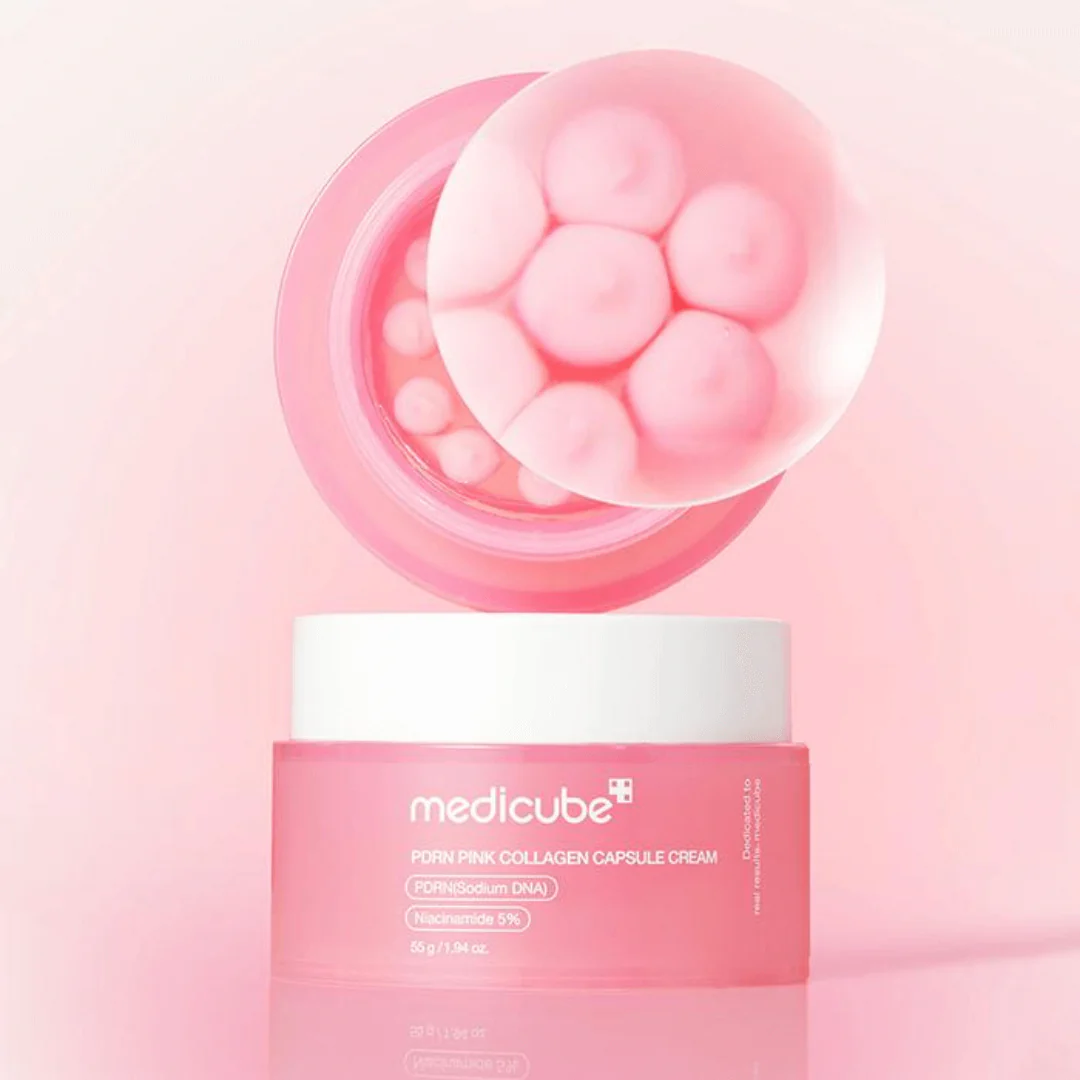 Crema enriquecida con cápsulas de colágeno rosa, PDRN y niacinamida que hidratan, unifican el tono y mejoran la luminosidad en piel opaca o con manchas